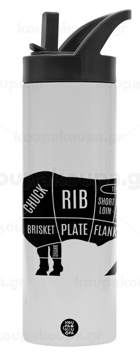 Diagrams for butcher shop, Metallic thermos bottle with straw & handle, stainless steel (Stainless steel 304), double-walled, 600ml.