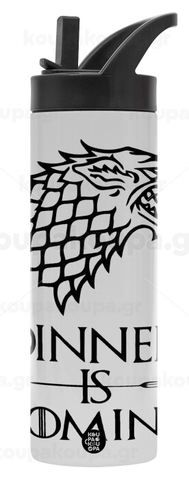 Dinner is coming (GOT), Metallic thermos bottle with straw & handle, stainless steel (Stainless steel 304), double-walled, 600ml.