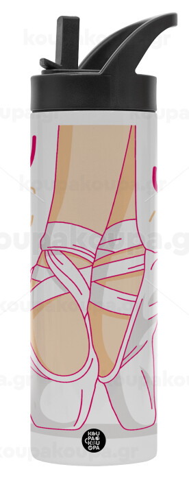 Πουεντ, Metallic thermos bottle with straw & handle, stainless steel (Stainless steel 304), double-walled, 600ml.