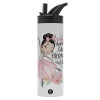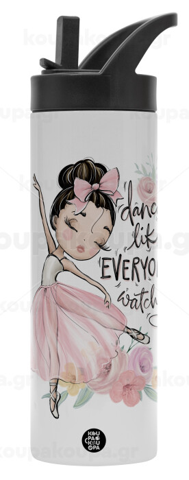 Dance Like everyone's watching, Metallic thermos bottle with straw & handle, stainless steel (Stainless steel 304), double-walled, 600ml.