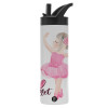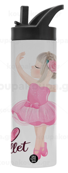 I Love Ballet, Metallic thermos bottle with straw & handle, stainless steel (Stainless steel 304), double-walled, 600ml.