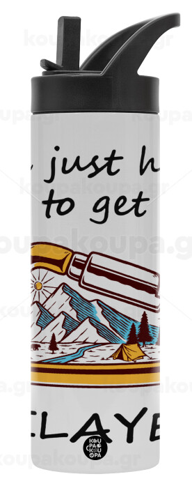 I'm just here to get Belayed, Metallic thermos bottle with straw & handle, stainless steel (Stainless steel 304), double-walled, 600ml.
