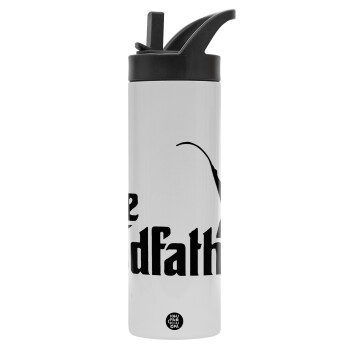 The rodfather, Metallic thermos bottle with straw & handle, stainless steel (Stainless steel 304), double-walled, 600ml.