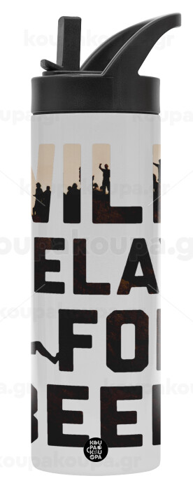 Will Belay For Beer, Metallic thermos bottle with straw & handle, stainless steel (Stainless steel 304), double-walled, 600ml.
