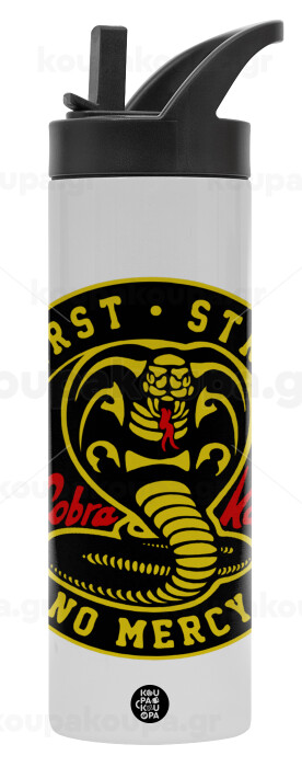 cobra kai strike first dojo, Metallic thermos bottle with straw & handle, stainless steel (Stainless steel 304), double-walled, 600ml.