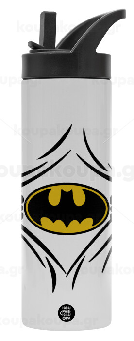 Hero batman, Metallic thermos bottle with straw & handle, stainless steel (Stainless steel 304), double-walled, 600ml.