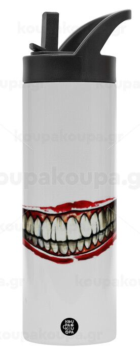 Joker smile, Metallic thermos bottle with straw & handle, stainless steel (Stainless steel 304), double-walled, 600ml.