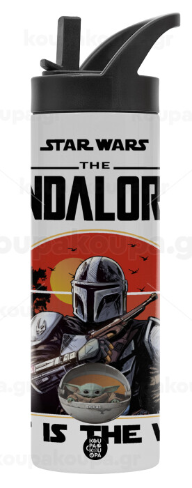 Mandalorian, Metallic thermos bottle with straw & handle, stainless steel (Stainless steel 304), double-walled, 600ml.