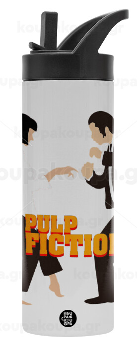 Pulp Fiction dancing, Metallic thermos bottle with straw & handle, stainless steel (Stainless steel 304), double-walled, 600ml.