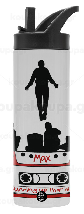 Running up that hill, Stranger Things, Metallic thermos bottle with straw & handle, stainless steel (Stainless steel 304), double-walled, 600ml.