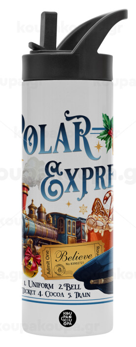 The Polar Express, Metallic thermos bottle with straw & handle, stainless steel (Stainless steel 304), double-walled, 600ml.