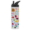 Παιδική φαντασία, Metallic thermos bottle with straw & handle, stainless steel (Stainless steel 304), double-walled, 600ml.
