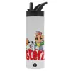 Asterix and Obelix, Metallic thermos bottle with straw & handle, stainless steel (Stainless steel 304), double-walled, 600ml.