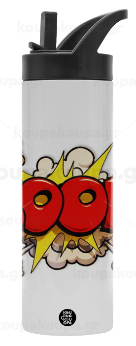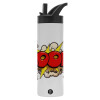 BOOM!!!, Metallic thermos bottle with straw & handle, stainless steel (Stainless steel 304), double-walled, 600ml.