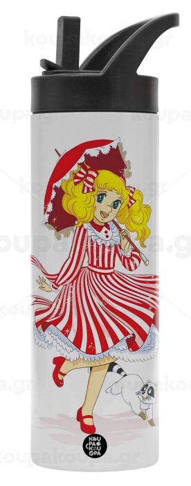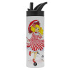Candy, Metallic thermos bottle with straw & handle, stainless steel (Stainless steel 304), double-walled, 600ml.