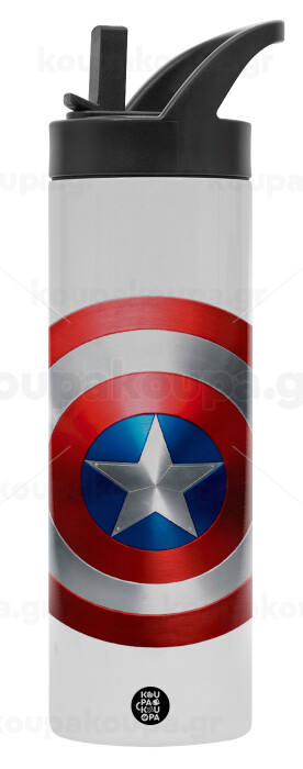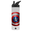 Captain America, Metallic thermos bottle with straw & handle, stainless steel (Stainless steel 304), double-walled, 600ml.