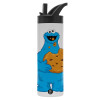 Cookie Monster, Metallic thermos bottle with straw & handle, stainless steel (Stainless steel 304), double-walled, 600ml.