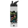 Dinosaur break wall, Metallic thermos bottle with straw & handle, stainless steel (Stainless steel 304), double-walled, 600ml.