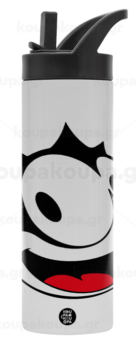 Felix the cat, Metallic thermos bottle with straw & handle, stainless steel (Stainless steel 304), double-walled, 600ml.