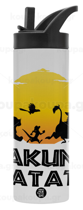 Hakuna Matata, Metallic thermos bottle with straw & handle, stainless steel (Stainless steel 304), double-walled, 600ml.
