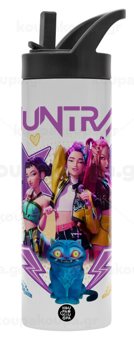 Huntrix K-pop series, Metallic thermos bottle with straw & handle, stainless steel (Stainless steel 304), double-walled, 600ml.