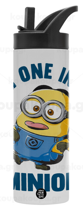 I'm one in a minion, Metallic thermos bottle with straw & handle, stainless steel (Stainless steel 304), double-walled, 600ml.