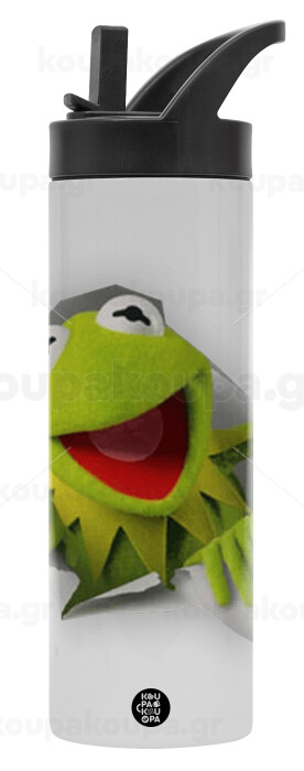 Kermit the frog, Metallic thermos bottle with straw & handle, stainless steel (Stainless steel 304), double-walled, 600ml.