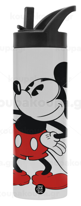 Mickey Classic, Metallic thermos bottle with straw & handle, stainless steel (Stainless steel 304), double-walled, 600ml.