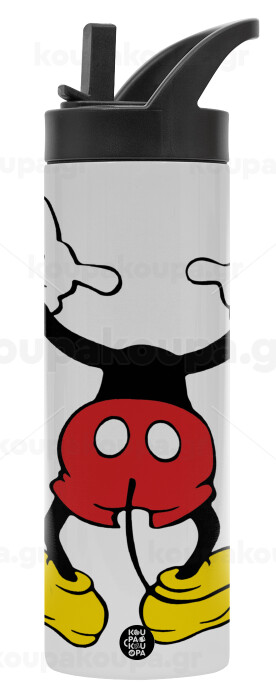 Mickey hide..., Metallic thermos bottle with straw & handle, stainless steel (Stainless steel 304), double-walled, 600ml.