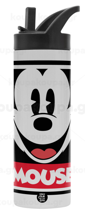 Mickey Mouse, Metallic thermos bottle with straw & handle, stainless steel (Stainless steel 304), double-walled, 600ml.
