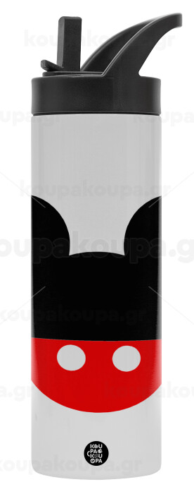 Mickey head, Metallic thermos bottle with straw & handle, stainless steel (Stainless steel 304), double-walled, 600ml.