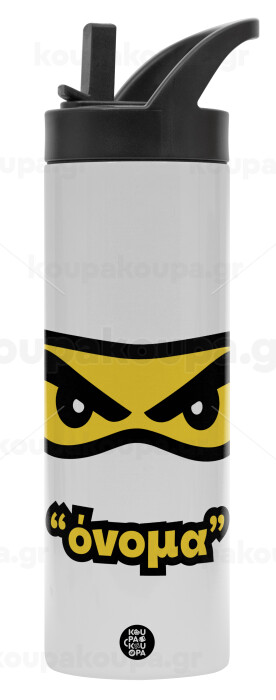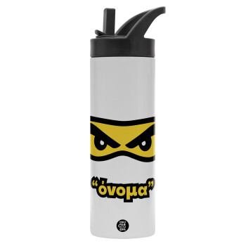 Ninja Eyes με όνομα, Metallic thermos bottle with straw & handle, stainless steel (Stainless steel 304), double-walled, 600ml.