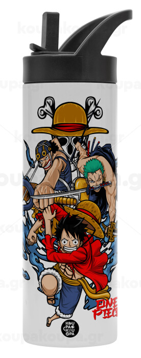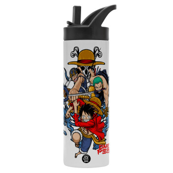 One Piece, Metallic thermos bottle with straw & handle, stainless steel (Stainless steel 304), double-walled, 600ml.