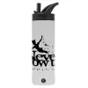 Peter pan, Never Grow UP, Metallic thermos bottle with straw & handle, stainless steel (Stainless steel 304), double-walled, 600ml.