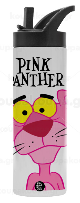 Pink Panther cartoon, Metallic thermos bottle with straw & handle, stainless steel (Stainless steel 304), double-walled, 600ml.
