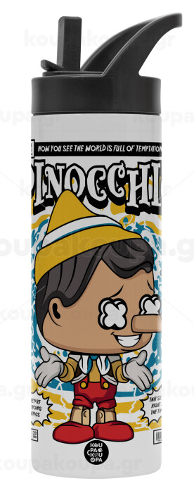 Pinocchio, Metallic thermos bottle with straw & handle, stainless steel (Stainless steel 304), double-walled, 600ml.