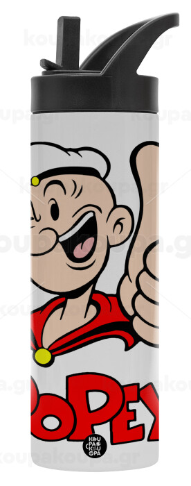 Popeye the sailor man, Metallic thermos bottle with straw & handle, stainless steel (Stainless steel 304), double-walled, 600ml.