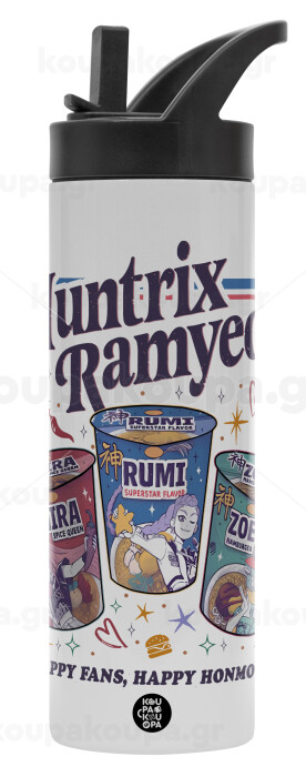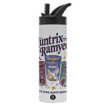 Ramyeon Huntrix, Metallic thermos bottle with straw & handle, stainless steel (Stainless steel 304), double-walled, 600ml.