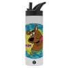 Scooby Doo, Metallic thermos bottle with straw & handle, stainless steel (Stainless steel 304), double-walled, 600ml.