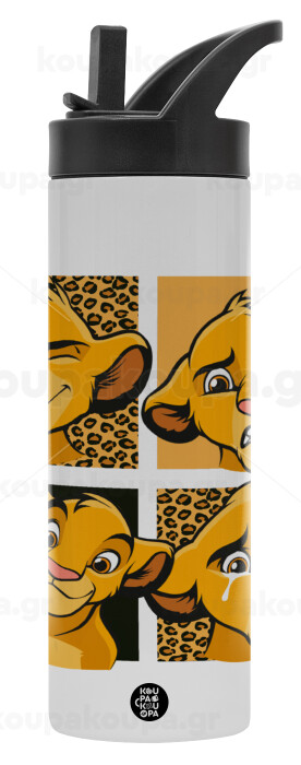 Simba, lion king, Metallic thermos bottle with straw & handle, stainless steel (Stainless steel 304), double-walled, 600ml.
