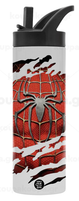 Spiderman cracked, Metallic thermos bottle with straw & handle, stainless steel (Stainless steel 304), double-walled, 600ml.