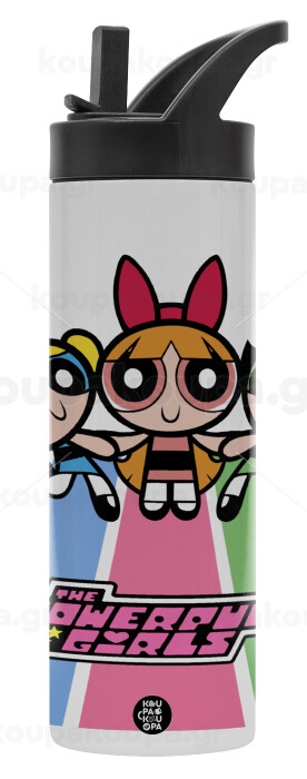 The powerpuff girls , Metallic thermos bottle with straw & handle, stainless steel (Stainless steel 304), double-walled, 600ml.