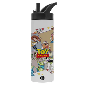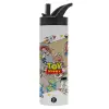 toystory characters, Metallic thermos bottle with straw & handle, stainless steel (Stainless steel 304), double-walled, 600ml.