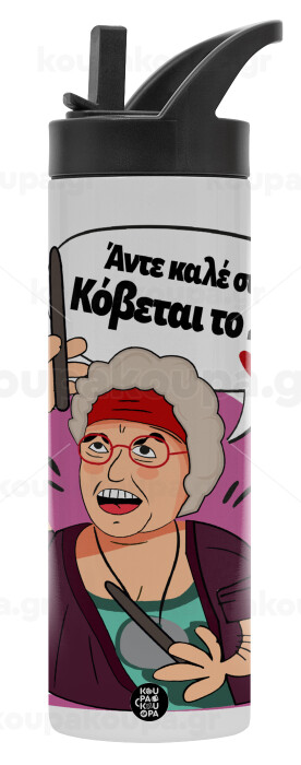 Αντε καλέ, σιγά, κόβεται το σέξ ;, Metallic thermos bottle with straw & handle, stainless steel (Stainless steel 304), double-walled, 600ml.
