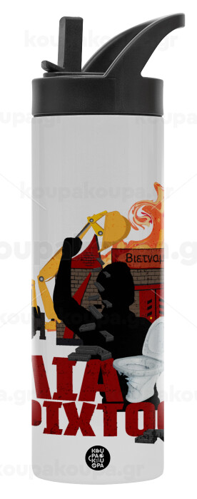 Ηλία ρίχτοοο!!!, Metallic thermos bottle with straw & handle, stainless steel (Stainless steel 304), double-walled, 600ml.