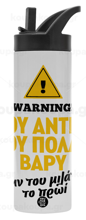 Του άντρα του πολλά βαρύ, Metallic thermos bottle with straw & handle, stainless steel (Stainless steel 304), double-walled, 600ml.