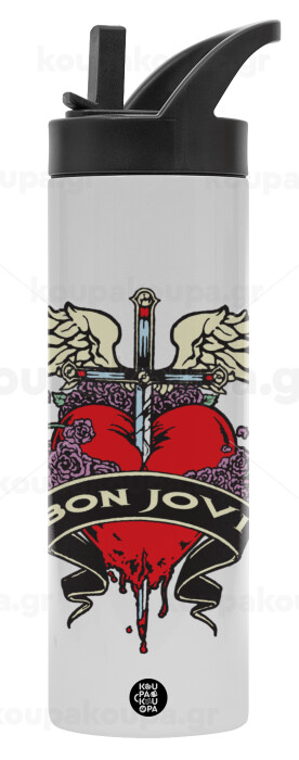 Bon Jovi, Metallic thermos bottle with straw & handle, stainless steel (Stainless steel 304), double-walled, 600ml.