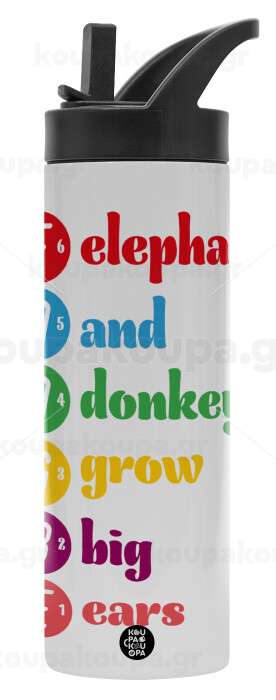Elephants And Donkeys Grow Big Ears, Metallic thermos bottle with straw & handle, stainless steel (Stainless steel 304), double-walled, 600ml.