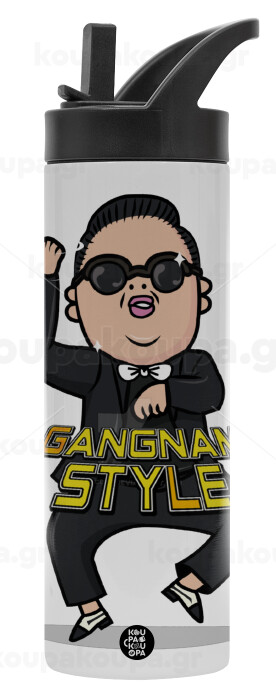 PSY - GANGNAM STYLE, Metallic thermos bottle with straw & handle, stainless steel (Stainless steel 304), double-walled, 600ml.