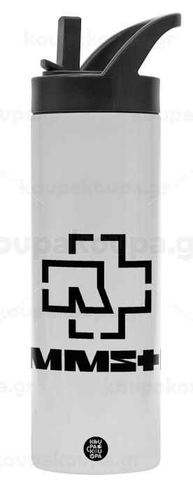 Rammstein, Metallic thermos bottle with straw & handle, stainless steel (Stainless steel 304), double-walled, 600ml.